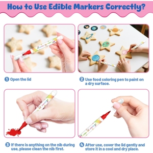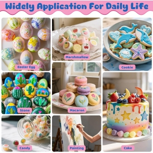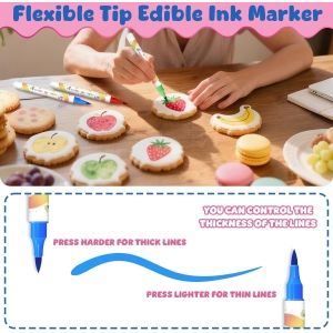 Ces stylos comestibles sont adaptés à une grande variété de surfaces alimentaires. Que ce soit pour des biscuits croustillants, du fondant ou même du chocolat, leur application est fluide et précise. Parfaits pour les gâteaux, les œufs de Pâques, les guimauves, ou même les fruits, ces marqueurs sont un atout pour chaque projet créatif.