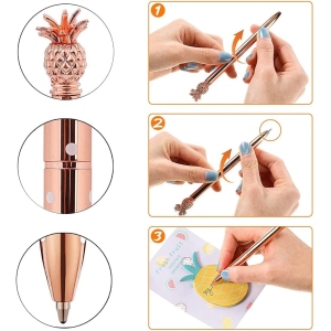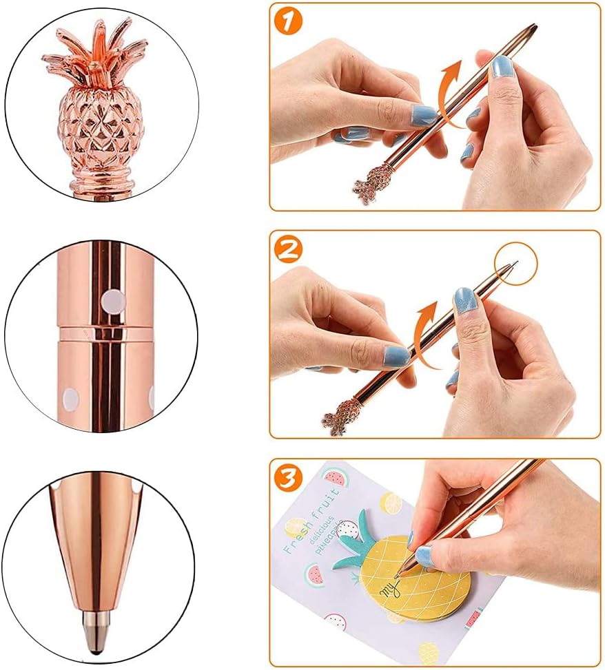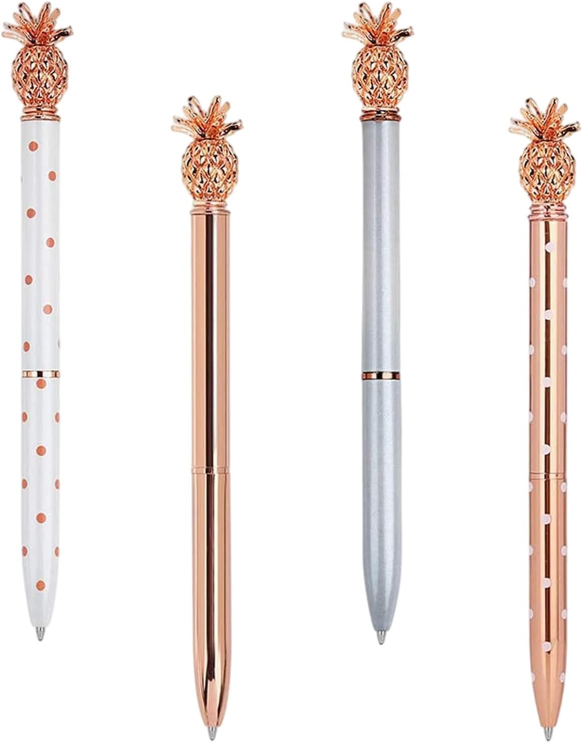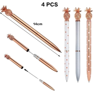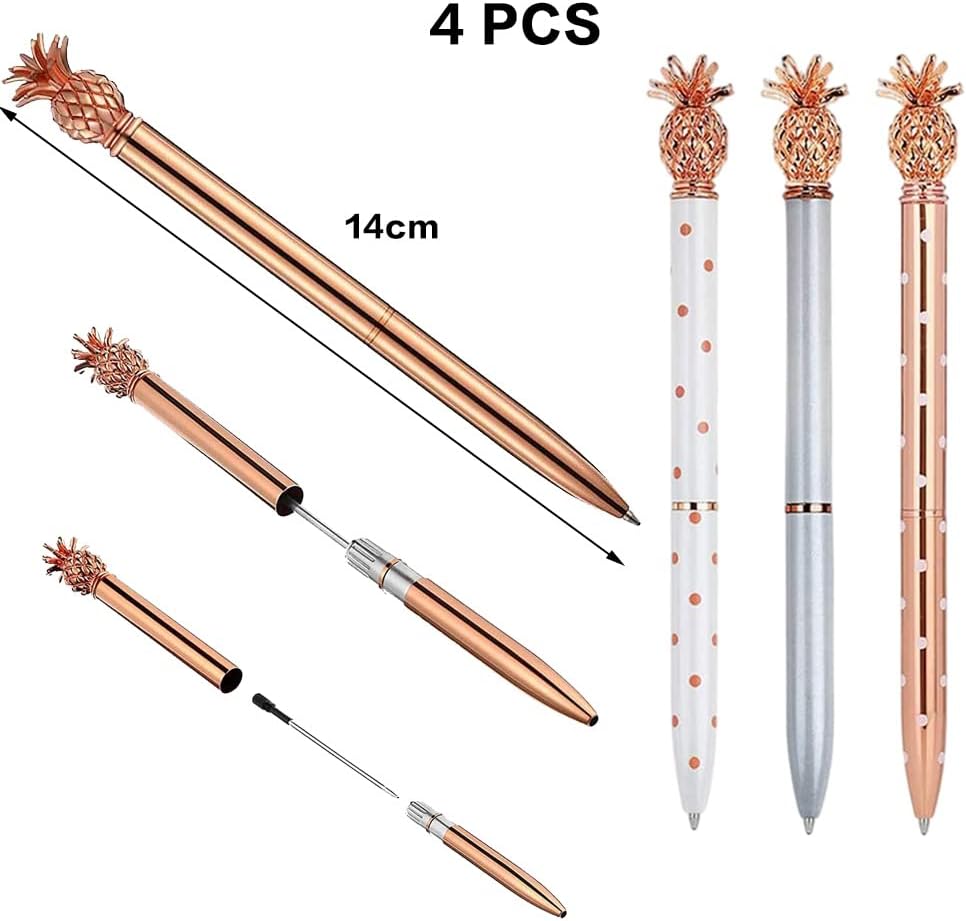 Le Stylo Ananas, un accessoire stylé et fonctionnel, se distingue par son design unique et ses matériaux de qualité. Chaque ensemble comprend quatre stylos en métal de couleur or rose, argent, or rose à pois blancs, et blanc à pois roses. Ces stylos sont non seulement esthétiques, mais ils sont également conçus pour offrir une expérience d’écriture agréable et fluide. Grâce à leur fabrication en métal inoxydable, ils allient durabilité et confort d’utilisation, tout en ajoutant une touche de chic à votre bureau ou à votre trousse d’école.