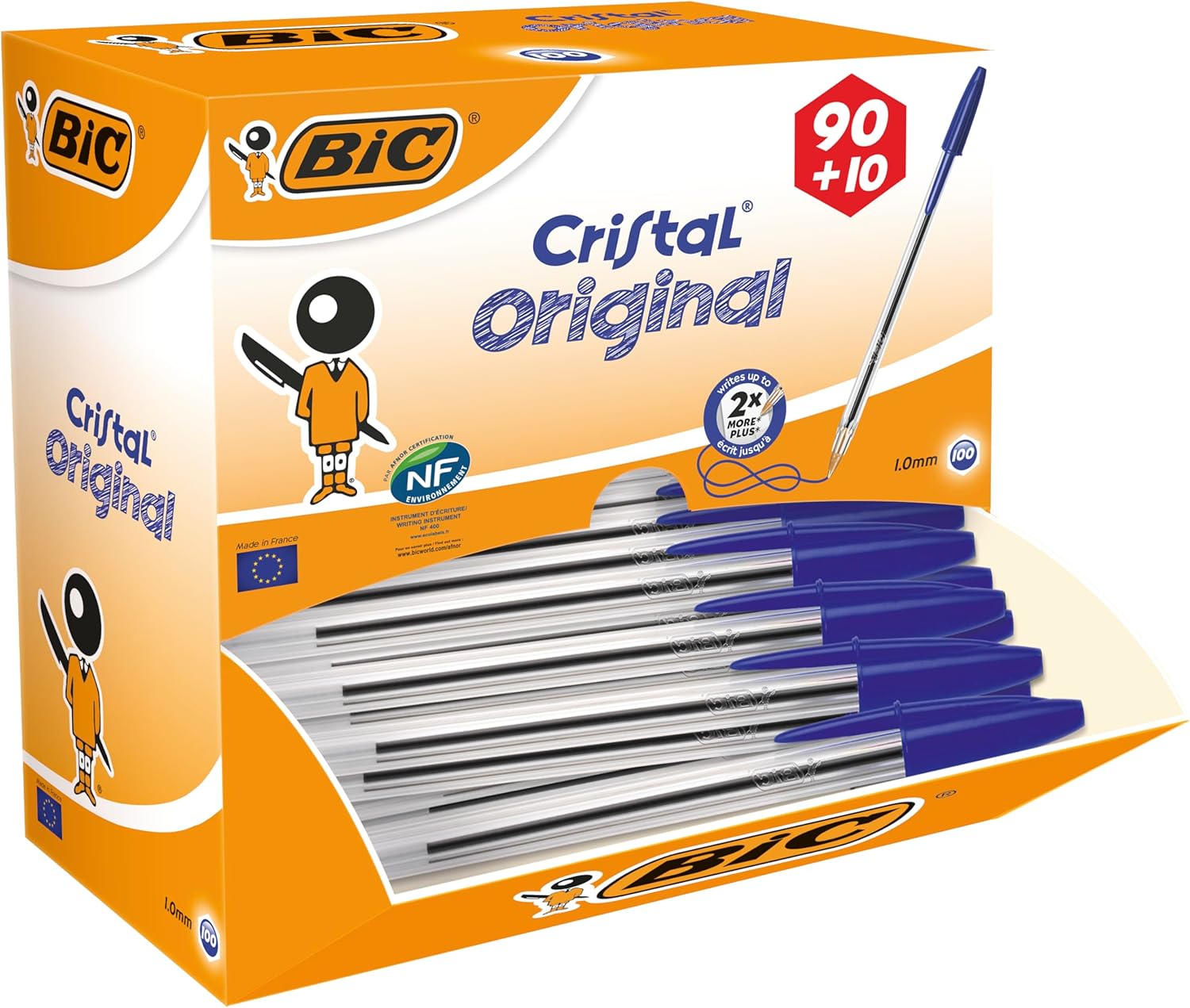 Chaque stylo BIC Cristal Original permet d’écrire jusqu’à 3 km, offrant ainsi une durée de vie prolongée.