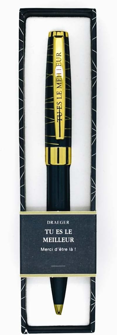 En résumé, le DRAEGER PARIS 1886 – Stylo Bille Noir « Tu es le Meilleur » est un produit qui allie élégance, qualité et symbolique. Que vous cherchiez un cadeau pour un ami, un collègue ou un membre de votre famille, ce stylo saura séduire. Son design soigné, sa qualité d’écriture supérieure et son message personnel en font un choix idéal pour marquer les moments importants de la vie. Avec ce stylo, vous offrez bien plus qu’un simple objet : vous livrez un morceau de votre appréciation et de vos émotions. Opter pour ce stylo, c’est faire le choix d’un cadeau qui restera dans les mémoires, à la fois utile et chargé de sens.