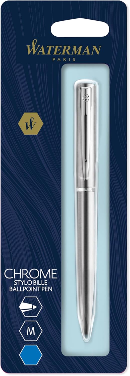 Le Waterman Allure se distingue par son esthétique raffinée. Le métal chromé offre une finition brillante qui non seulement capte la lumière mais résiste également aux rayures, garantissant que le stylo conserve son éclat au fil du temps. La construction robuste et le poids bien équilibré font que ce stylo est un plaisir à utiliser. Il s’agit d’un outil sophistiqué qui ne manquera pas d’impressionner lors de n’importe quelle situation professionnelle ou personnelle.
