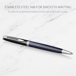 Le stylo bille Waterman Hémisphère, avec sa laque noire et bleue et ses finitions en palladium, incarne l’élégance et le raffinement. Issu de la collection Hémisphère « Colour Blocking », ce modèle se distingue par son design audacieux et contemporain, alliant tradition et modernité.
