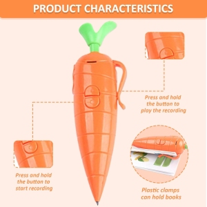 Le stylo enregistreur en forme de carotte est un produit innovant qui allie l’écriture traditionnelle à la technologie d’enregistrement vocal, offrant ainsi une expérience ludique et éducative aux enfants. Son design attrayant, sa facilité d’utilisation et sa durabilité en font un outil précieux pour stimuler la créativité et l’apprentissage des plus jeunes. Que ce soit à la maison ou à l’école, ce stylo saura captiver l’attention des enfants et les encourager à développer leurs compétences en écriture et en expression orale.