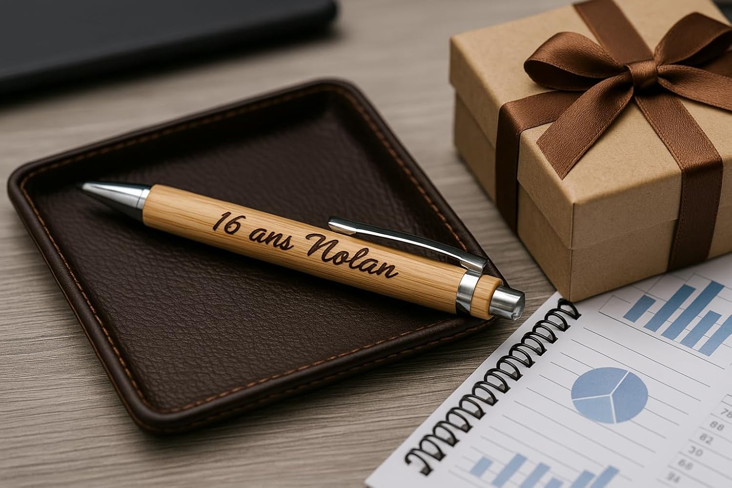 Offrez un cadeau unique et durable avec nos stylos à bille personnalisés en bambou naturel. Ces accessoires élégants, gravés au laser avec le texte de votre choix, sont idéals pour marquer des occasions spéciales : mariages, anniversaires, baptêmes, séminaires, fêtes de village ou actions de communication d’entreprise. Chaque stylo est minutieusement gravé dans notre atelier en France, où vous pouvez personnaliser votre cadeau avec un prénom, un message, une date ou même un logo, apportant ainsi une touche personnelle à chaque création.