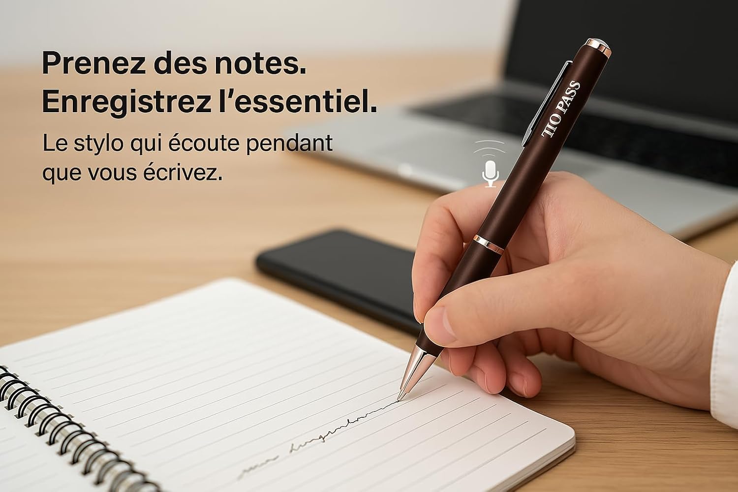 « J’ai utilisé ce stylo lors de mes réunions, et il fonctionne parfaitement. La qualité audio est impressionnante et je peux prendre des notes en même temps. Je le recommande vivement ! » – Claire, 34 ans.