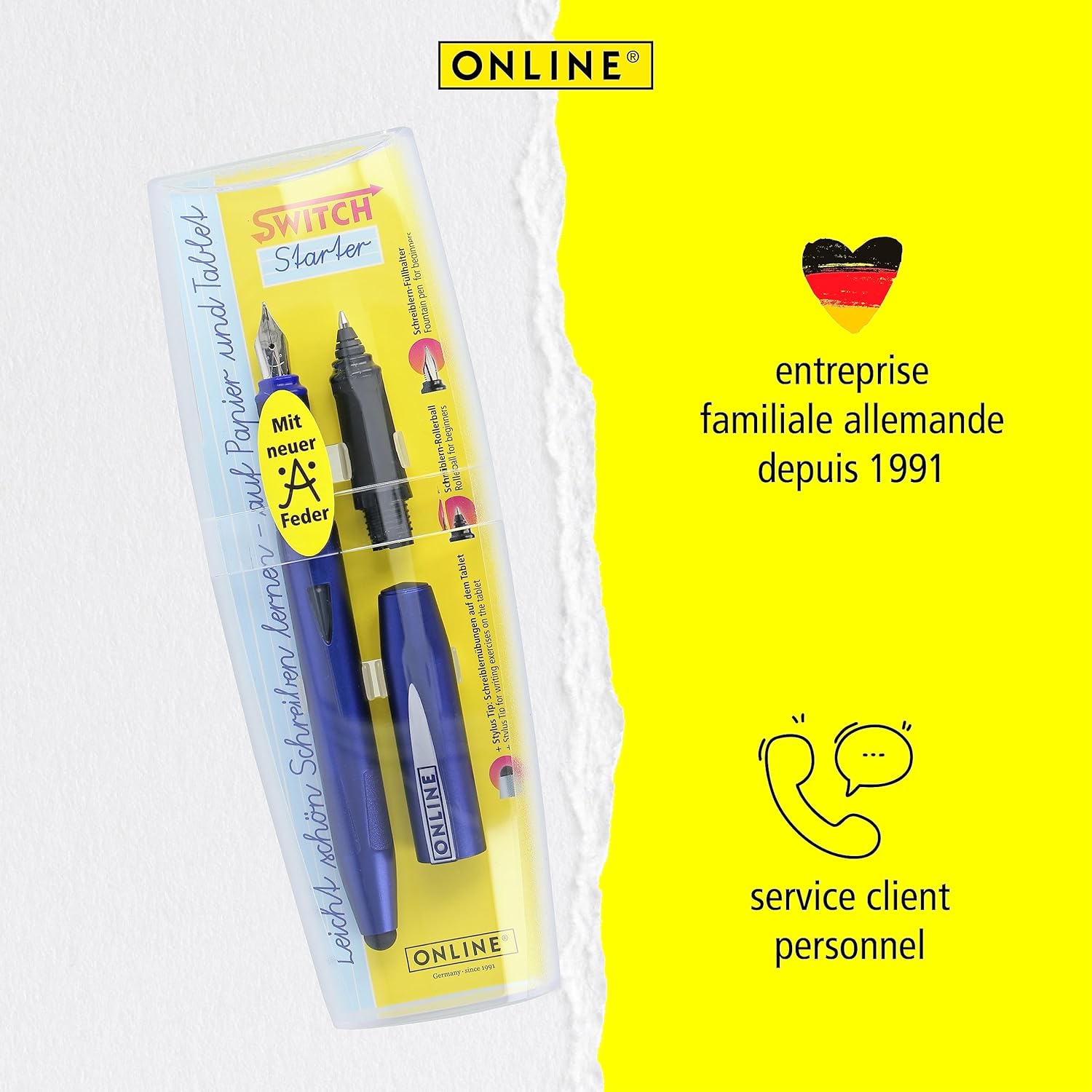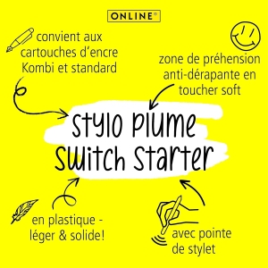 Le Online Stylo à encre Switch Starter Bleu est un ensemble innovant conçu pour accompagner les jeunes élèves dans leurs premières expériences d’écriture. Ce set comprend un stylo plume et un roller ergonomiques, adaptés aux besoins spécifiques des débutants, des enfants et des élèves en phase d’apprentissage. Avec sa zone de préhension soft grip et sa compatibilité avec des cartouches d’encre standard, ce stylo promet une expérience d’écriture fluide et confortable.
