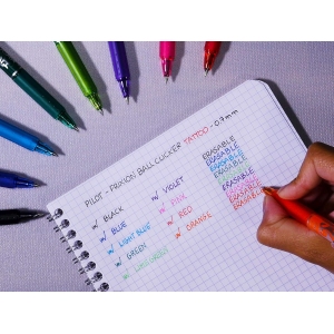 Stylos Pilot effacables racheté pour cette année scolaire 2025/2026 car ils sont agréables à manipuler, facile à utiliser durablement grâce au systeme retractable (Pas de perte de capuchon donc pas de séchage d’encre).Mon fils est gaucher et c’est stylos lui donne une belle écriture avec la pointe moyenne.Déjà recommandé à la famille !