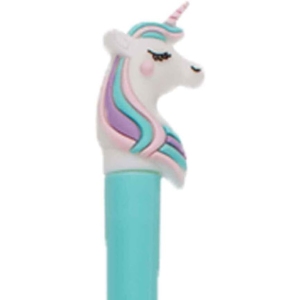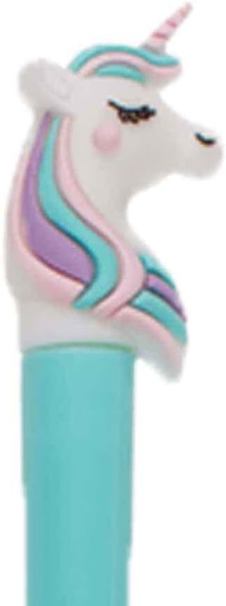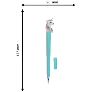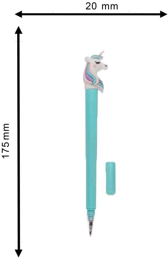 Ce stylo mesure 17,5 cm de longueur pour 2 cm de diamètre, offrant une prise en main confortable. Son corps est fabriqué en plastique PVC de haute résistance, garantissant durabilité et légèreté. La tête de la licorne, réalisée en caoutchouc souple, apporte une touche de fantaisie et de douceur au toucher. Les couleurs pastel, notamment le bleu turquoise, confèrent au stylo une esthétique apaisante et élégante.