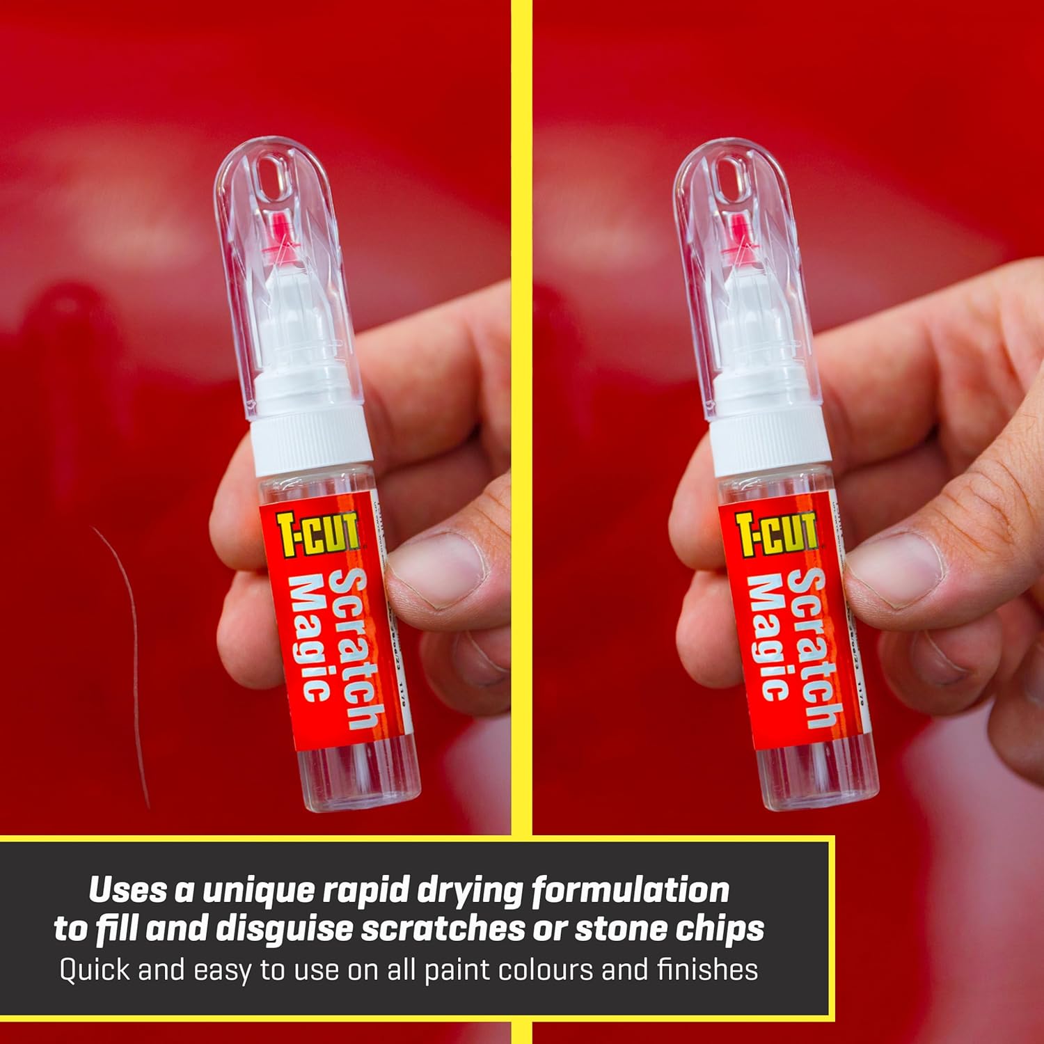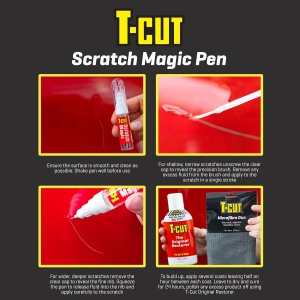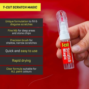 T-Cut Scratch Magic est un produit conçu pour masquer les égratignures et les éclats de pierre présents sur toutes les teintes de peinture, y compris les finitions métalliques. Sa formule unique permet de remplir et d’atténuer l’apparence des imperfections tout en offrant une protection contre les conditions climatiques, la rouille, et l’oxydation. Ce stylo magique se distingue par sa facilité d’application grâce à sa pointe fine, qui permet des retouches précises sur les zones touchées.