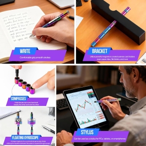 En tant que stylo, il remplit parfaitement ses fonctions d’écriture, mais il fait bien plus. Doté d’une pointe capacitive, il est parfaitement compatible avec les appareils électroniques comme les smartphones et les tablettes. Cela en fait un outil idéal pour les étudiants qui veulent prendre des notes sur papier ou sur un écran tactile. En parallèle, il s’utilise également comme un jouet de bureau pour se détendre pendant les heures de travail.