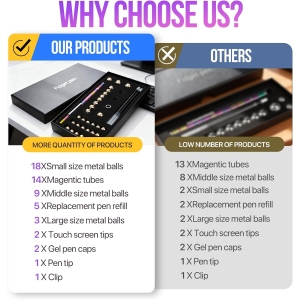 Ce stylo n’est pas qu’un simple instrument d’écriture. Il se compose de diverses pièces interchangeables, permettant à l’utilisateur de créer une multitude de formes, sculptures et même de puzzles. Avec 18 billes d’acier petites, 9 billes moyennes, 3 billes grosses, 14 anneaux magnétiques, et des recharges d’encre, le RoserRose offre une créativité sans limites.