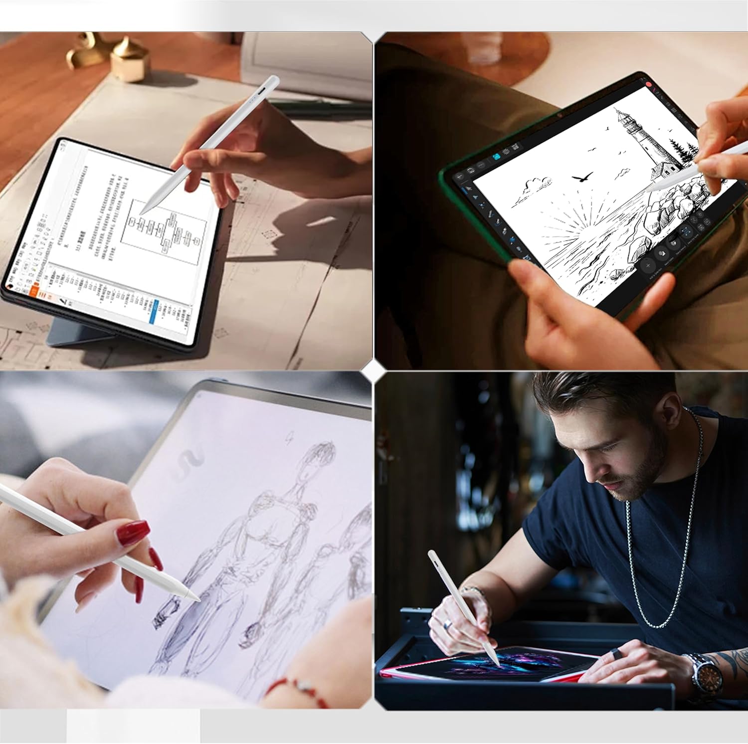 Ce stylet se distingue par son design élégant et sa légèreté, ne pesant que 10 grammes. Il est conçu pour une prise en main agréable, permettant une utilisation prolongée sans fatigue. La texture de la pointe, fabriquée à partir de matériaux de haute qualité, garantit une expérience d’écriture et de dessin sans décalage et sans rayures sur l’écran de l’iPad. Grâce à un angle d’écriture flexible à 180 °, il offre une fluidité d’utilisation, ce qui est essentiel pour les créateurs et les professionnels.