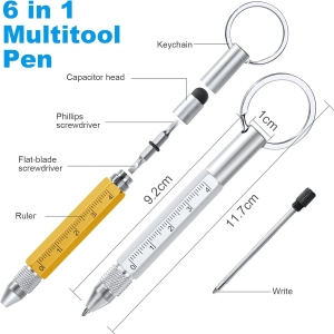 L’ensemble se compose de deux stylos multifonctions, chacun offrant six fonctions très utiles : un tournevis cruciforme, un tournevis à lame plate, un stylo capacitif, un stylo classique pour l’écriture, un porte-clés ainsi qu’une règle. Chaque fonction est pensée pour répondre aux exigences d’une variété de situations, que ce soit au travail, à l’école ou à la maison. Cela en fait un outil idéal pour quiconque cherchant à optimiser son espace et son efficacité.