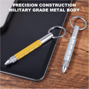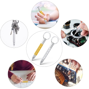 Le stylo offre six fonctions : tournevis cruciforme, tournevis à lame plate, stylo capacitif, écriture, porte-clés et règle.