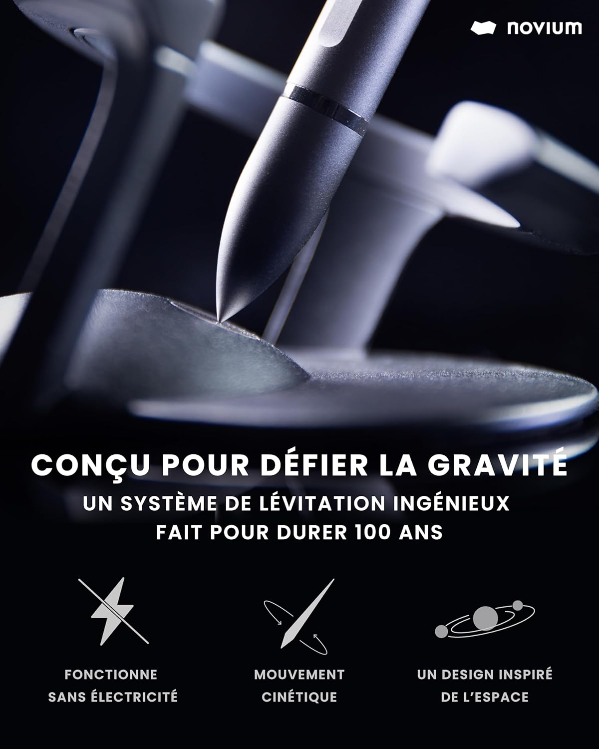 Le Hoverpen Interstellar se distingue par son angle de lévitation de 23,5°, rendant hommage à l’inclinaison de l’axe terrestre. Cette particularité non seulement intrigue, mais offre également une esthétique unique. En le plaçant sur son socle magnétique, il devient un véritable spectacle visuel qui attire l’œil et incite à la curiosité.