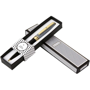Le stylo arbore un design élégant, mettant en avant un capuchon avec un motif de carrés blancs et noirs. Cette combinaison de teintes, or et noir, donne à l’objet un aspect raffiné pouvant parfaitement s’allier à une variété de décors et d’événements. Que ce soit pour une réunion professionnelle ou un rendez-vous personnel, il trouve sa place dans toutes les circonstances.