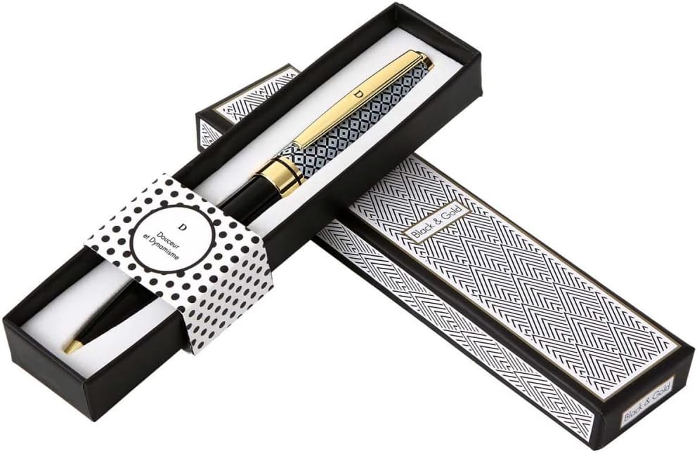 Le Stylo Black & Gold – D est livré dans son écrin design, parfait pour offrir en cadeau. Conçu pour impressionner, chaque boîte est parée d’un message puissant : « Douceur et Dynamisme ». Cela fait de cet accessoire non seulement un outil d’écriture, mais aussi un cadeau significatif pour marquer une occasion spéciale, qu’il s’agisse d’un anniversaire, d’une graduation ou d’une promotion.