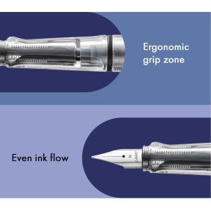 La plume en acier poli de taille M garantit un débit d’encre constant, offrant ainsi une écriture fluide et sans accroc. Les utilisateurs apprécient particulièrement la façon dont l’encre glisse sur le papier, transformant chaque mot en une expérience simple et sans effort. Le débit d’encre est optimisé pour éviter les fuites, ce qui est un atout majeur pour ceux qui transportent souvent leur stylo dans un sac. La cartouche bleue T 10 incluse permet de commencer à écrire immédiatement, sans avoir besoin d’achats supplémentaires.