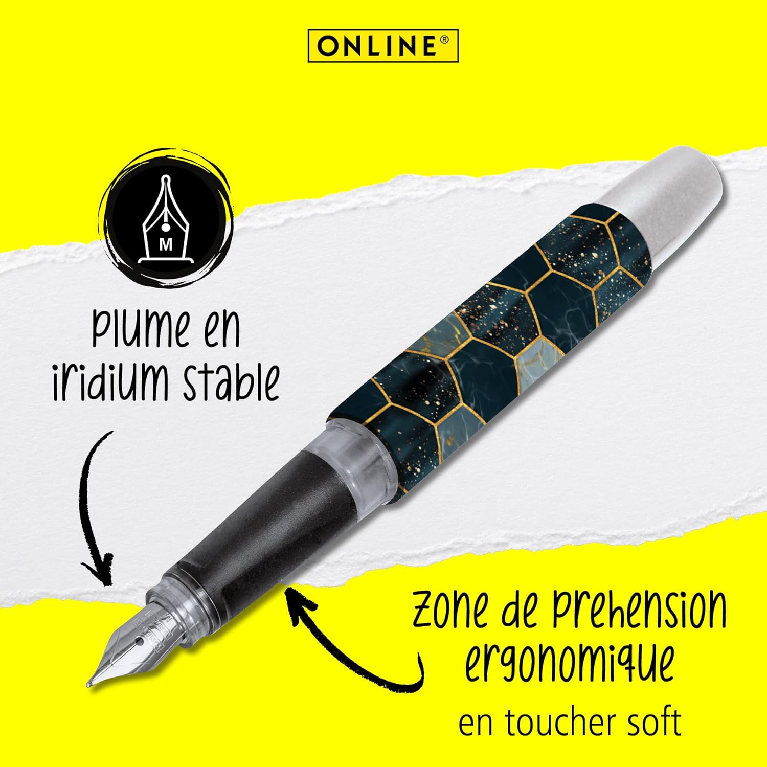 Le stylo plume ergonomique Campus Hexagon de la marque Online est un instrument d’écriture alliant élégance, confort et performance. Conçu pour les élèves, les étudiants et les professionnels, il s’adapte à tous les âges et à tous les styles d’écriture.