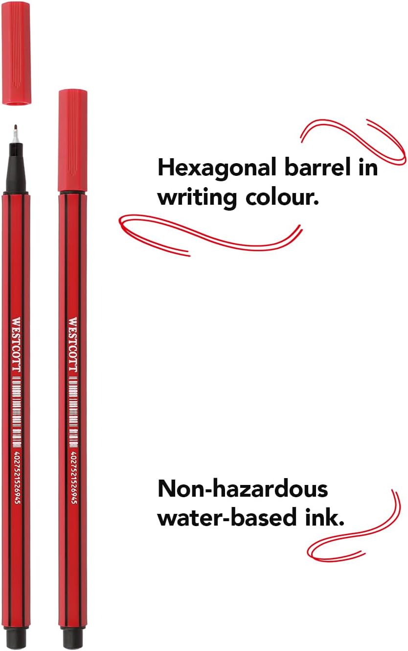Par rapport à d’autres fineliners haut de gamme, tels que le LUXOR Fineliner 045, le Westcott STORYLINER se distingue par sa pointe métallique robuste et son encre à séchage rapide. Tandis que le LUXOR propose une largeur de trait de 0,45 mm, le Westcott offre une précision accrue avec sa pointe de 0,4 mm, idéale pour les travaux nécessitant une grande finesse.