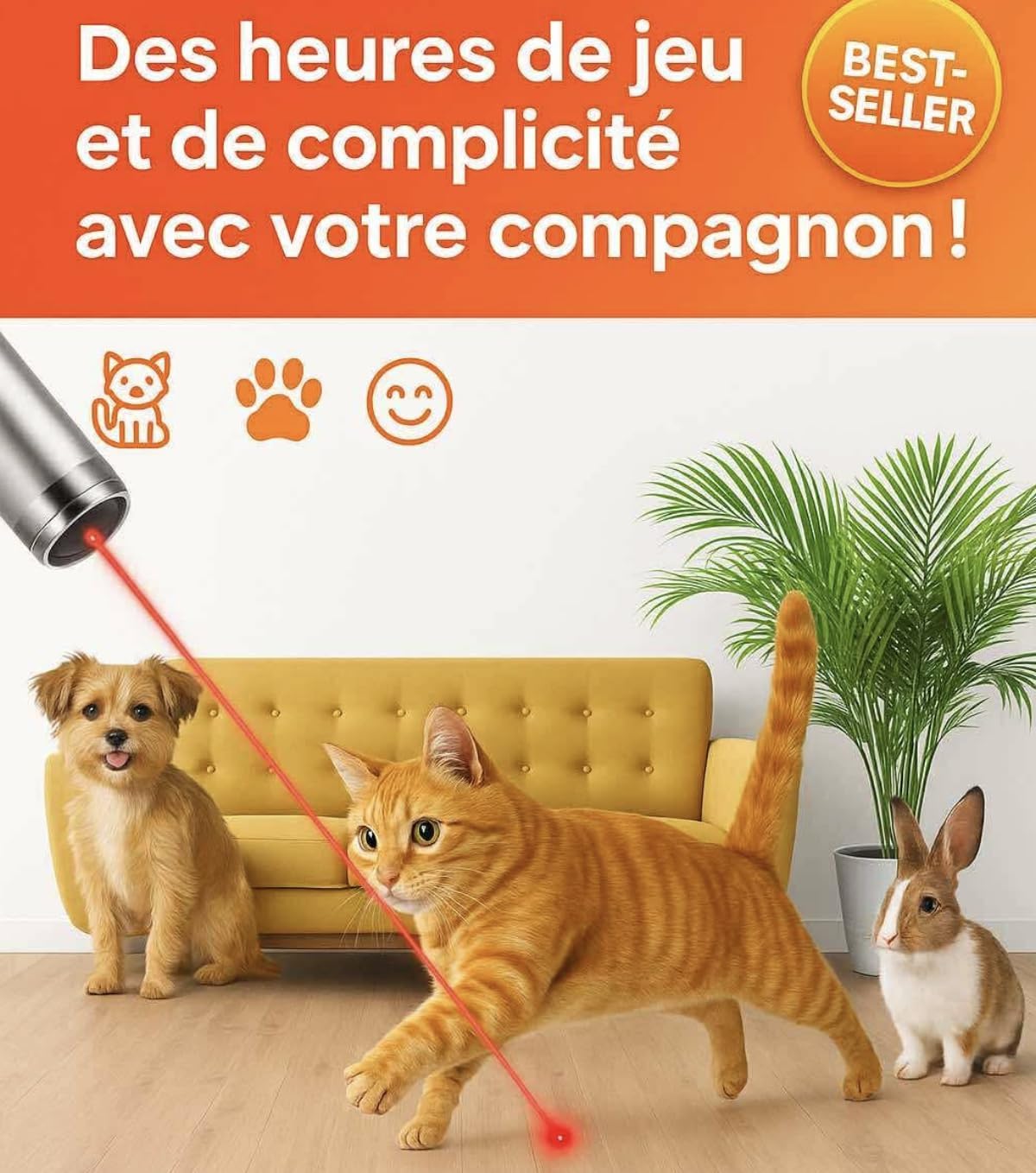 Bien que le laser soit conçu pour une utilisation sécurisée, il est conseillé de ne pas diriger le faisceau directement dans les yeux de votre animal pour éviter d’éventuelles complications.