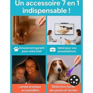 Le pointeur laser Cat & Moustache 7 en 1 se révèle être un investissement judicieux pour les propriétaires de chats, combinant amusement et utilité dans un seul appareil. Que vous recherchiez un moyen d’engager votre animal ou des outils pratiques pour votre quotidien, ce produit répond à de nombreuses attentes. Avec ses multiples fonctionnalités, il assure des heures de plaisir pour votre chat tout en facilitant diverses tâches pour vous-même. Sa conception pratique et compacte en fait un compagnon idéal à avoir à portée de main.