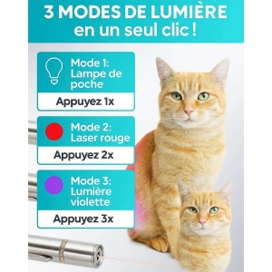 Mon chat est dingue de la fonction laser, et c’est fun de pouvoir varier les motifs. La fonction lampe de poche l’amuse bien aussi, et c’est pratique. C’est top que ce soit usb, ça évite de gaspiller des piles.