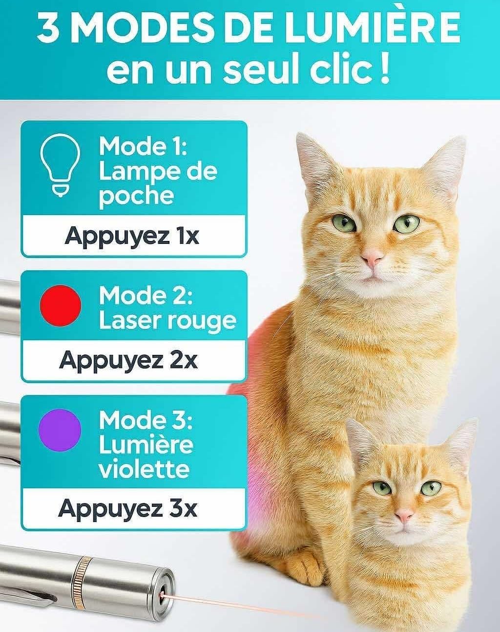 Article à la double fonctionnalité : laser pour amuser mon chat qui adore et petite lampe torche pour moi. Idéal