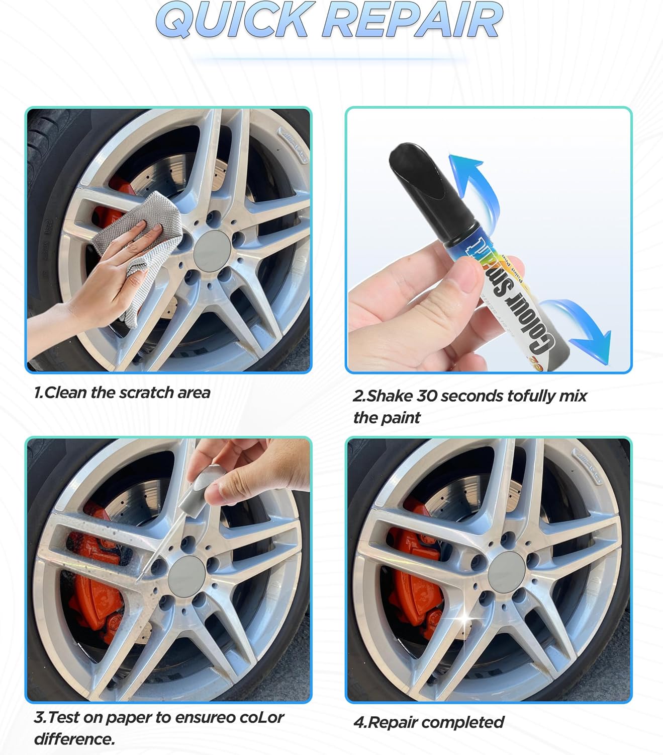 « Mon véhicule avait plusieurs rayures sur les jantes à cause du stationnement. Ce stylo a tout réparé en un rien de temps. »
