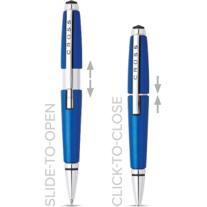 Le mécanisme d’ouverture par glissement du CROSS Edge permet d’ouvrir et de fermer le stylo en un seul clic, sans capuchon. Il suffit de faire glisser le corps du stylo pour le déployer et de le refermer en le glissant à nouveau, offrant une utilisation d’une seule main.