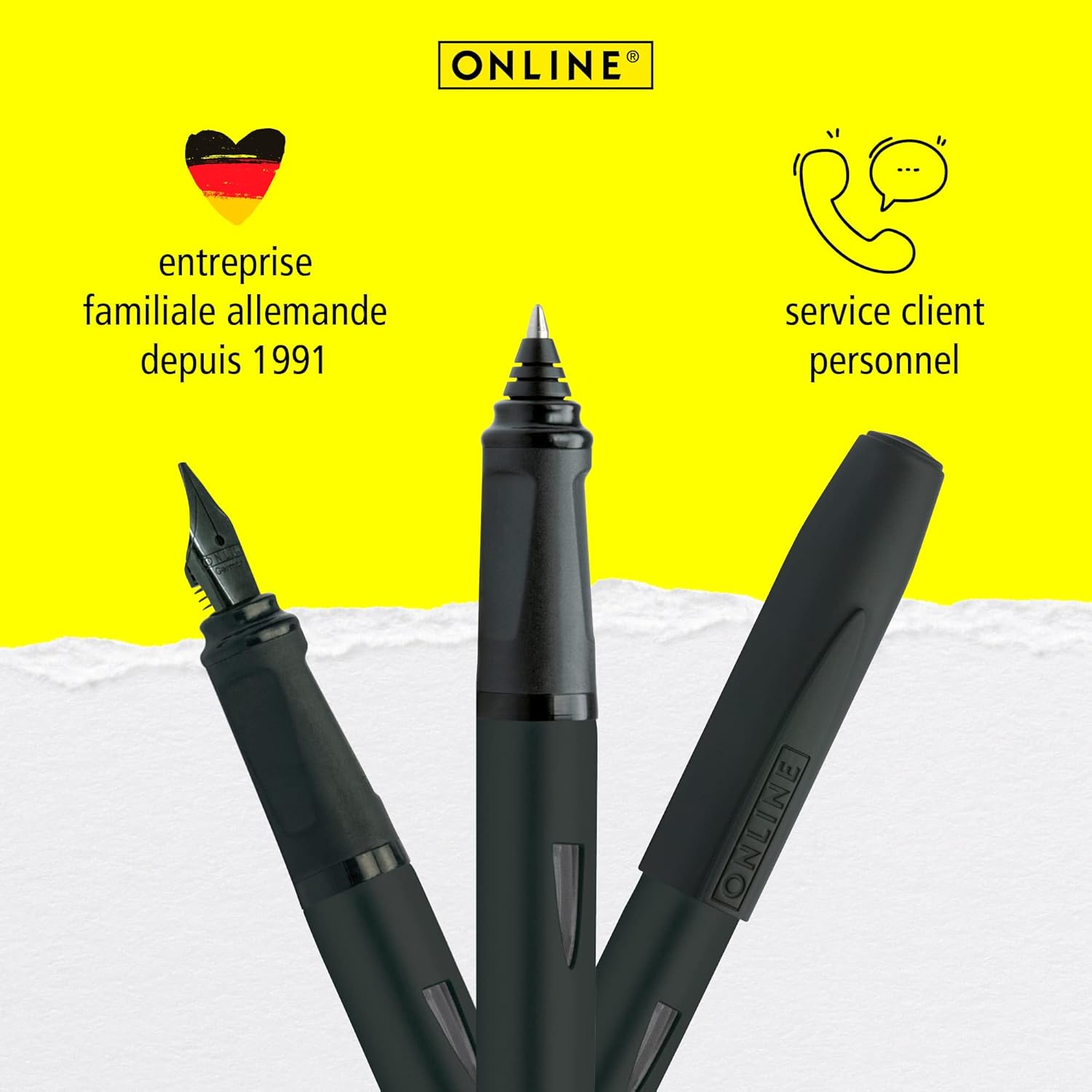 Fondée en 1991, Online est une entreprise allemande spécialisée dans la fabrication de stylos, de parures de calligraphie, d’étuis et bien plus encore. La marque est reconnue pour son engagement envers la qualité et l’innovation, offrant des produits fiables et durables. Le Switch Expert Noir incarne parfaitement ces valeurs, combinant design moderne, ergonomie et fonctionnalités adaptées aux besoins actuels.
