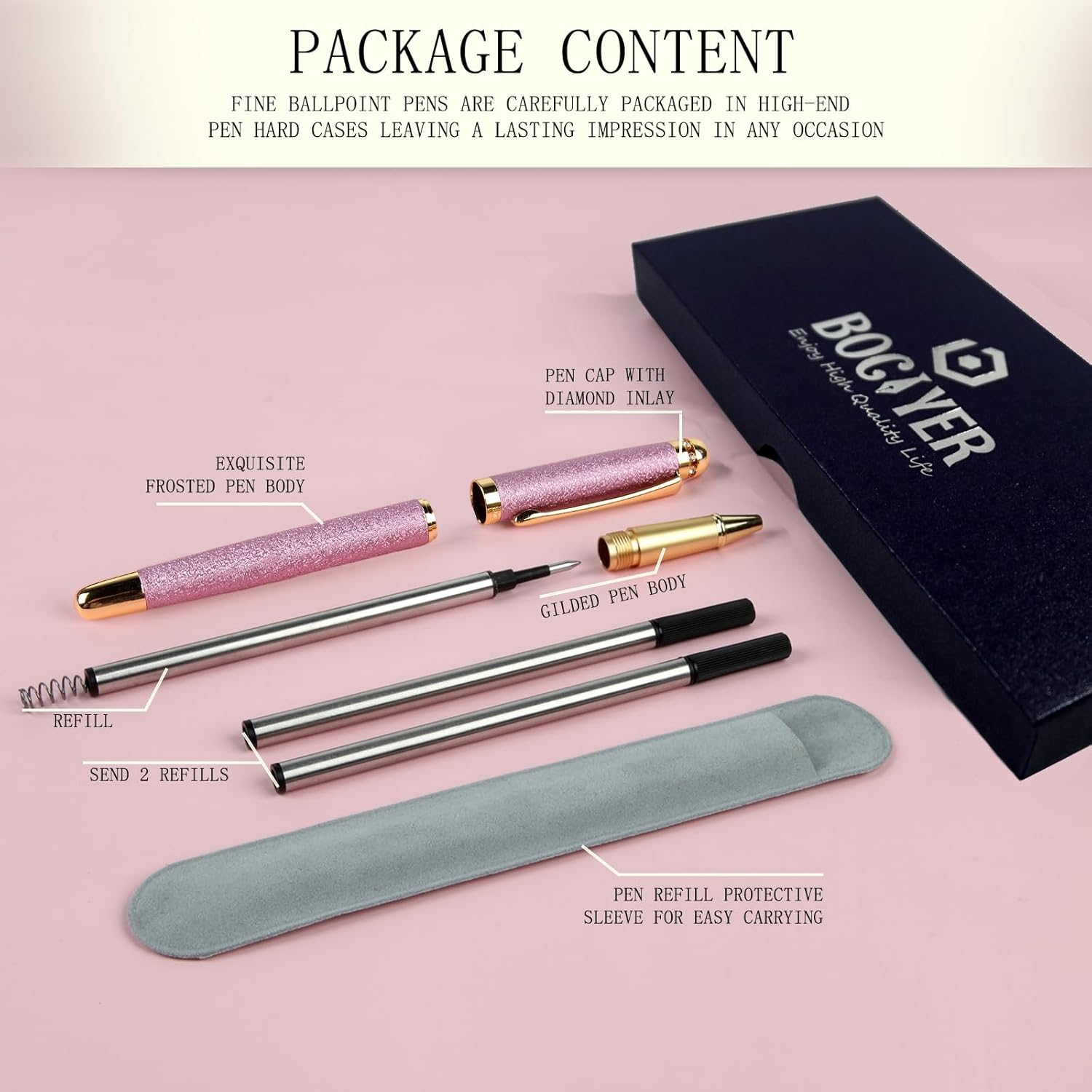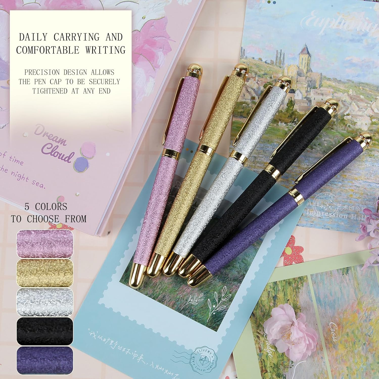La conception de ce stylo est soigneusement pensée pour allier esthétisme et fonctionnalité. Chaque détail, du frottement élégant du corps à la brillance des strass sur le capuchon, témoigne de l’excellence de Stroy. La texture douce et confortable du matériau givré incite à une utilisation prolongée sans fatigue. Ce stylisme se décline en plusieurs coloris attrayants — noir, or, argent, violet et rose poudré — permettant à chacun de choisir celui qui correspond le mieux à son goût.