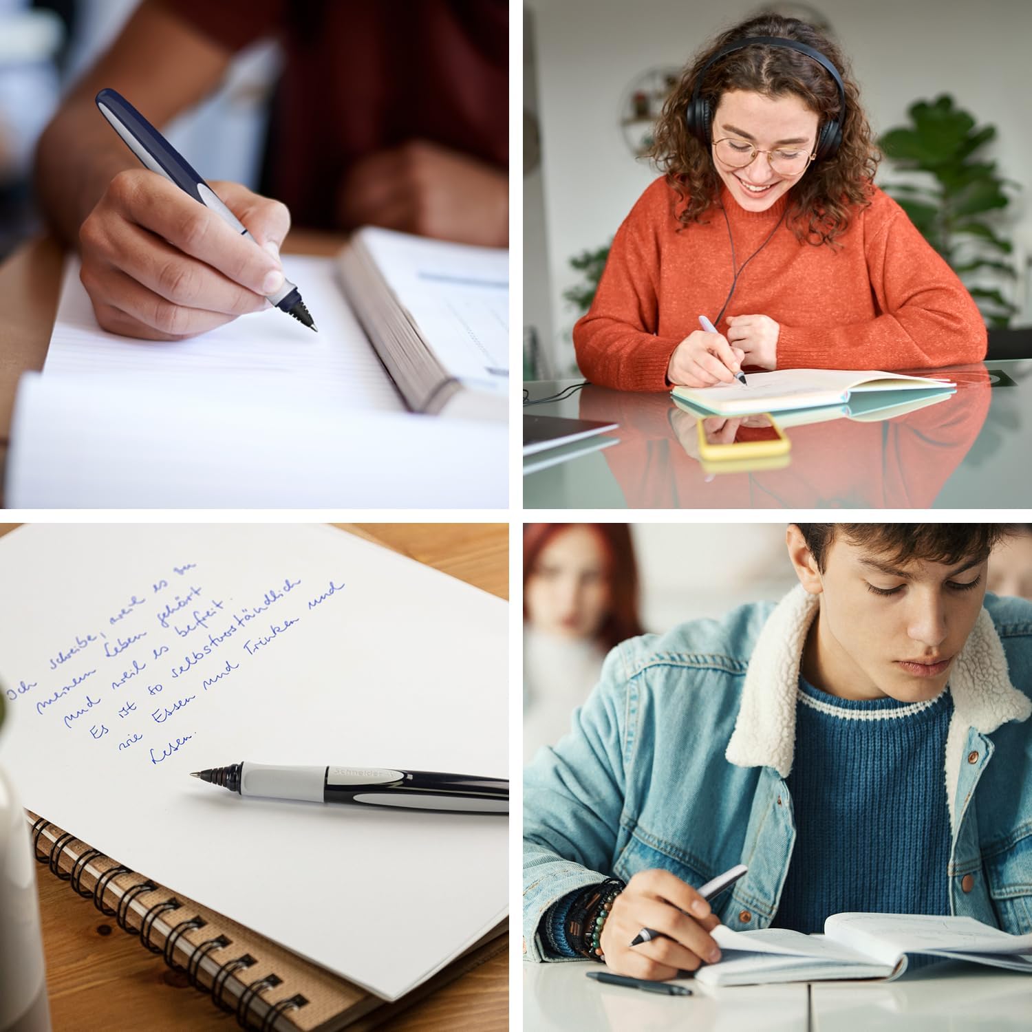 Ce stylo fonctionne à cartouche, ce qui est très pratique et plus économique au niveau des recharges (comparé à d’autres marques très appréciées). De légères empreintes permettent de positionner ses doigts correctement pour le tenir et sa glisse sur le papier est très fluide ! Stylo recommandé par une graphothérapeute. Je valide à 100% !
