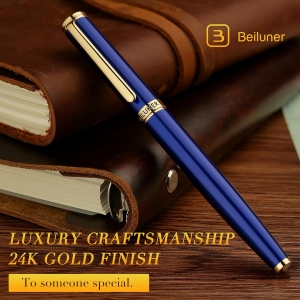 Le stylo roller de luxe BEILUNER reflète une élégance intemporelle tout en offrant une performance d’écriture exceptionnelle. Conçu pour les professionnels exigents, cet instrument est idéal pour ceux qui recherchent à la fois sophistication et fonctionnalité. Son corps noir en laque, associé aux ornements en or 24 carats, en fait un accessoire sans pareil sur un bureau exécutif.