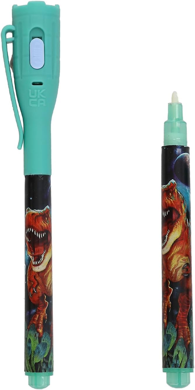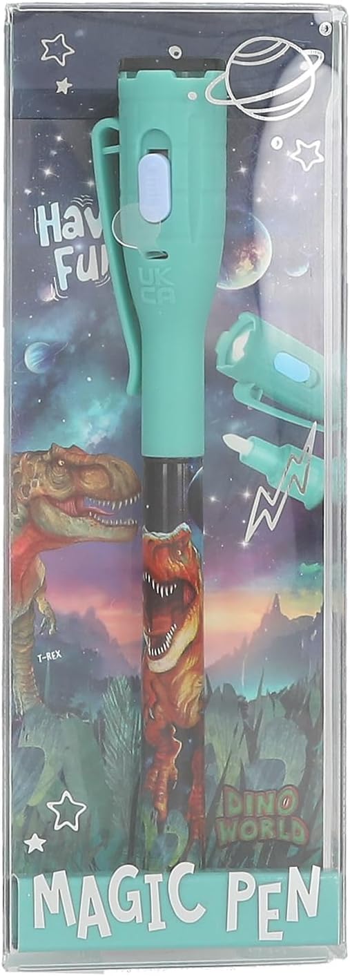 Le Crayon Secret Dino World de Depesche est un outil d’écriture innovant qui allie sécurité et amusement pour les jeunes esprits créatifs. Conçu pour écrire des messages secrets, ce stylo présente un design attrayant aux couleurs turquoise, orné d’un motif de T-Rex, emblématique de la collection Dino World. Son encre invisible ne devient visible que sous la lumière UV émise par le bouchon LED intégré, garantissant ainsi la confidentialité des messages. Les piles nécessaires au fonctionnement sont incluses, mais ne sont pas remplaçables.