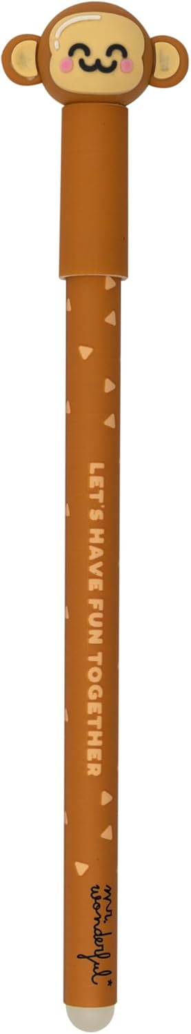 Dès le premier regard, le stylo effaçable Singe se distingue par son design original. À l’une de ses extrémités, une adorable figurine de singe, emblématique de l’univers Mr. Wonderful, apporte une dimension ludique et attachante. Cette petite touche de fantaisie transforme un objet du quotidien en un compagnon de travail agréable et motivant.