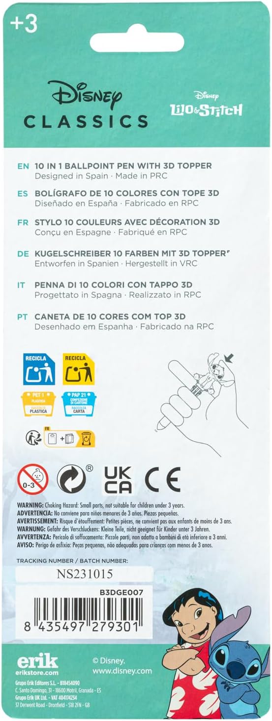 En résumé, le stylo 10 couleurs Stitch est plus qu’un simple instrument d’écriture. Il incarne la magie de Disney tout en offrant fonctionnalité et plaisir. Son design séduisant et ses couleurs éclatantes en font un choix parfait pour les jeunes comme pour les adultes qui souhaitent ajouter une touche de couleur à leurs notes. Parfait également comme cadeau, ce stylo saura apporter un sourire sur le visage de quiconque le reçoit. Avec sa qualité d’écriture impressionnante, chaque écriture devient un moment de plaisir créatif. N’attendez plus pour intégrer ce stylisme coloré et ludique dans votre quotidien !