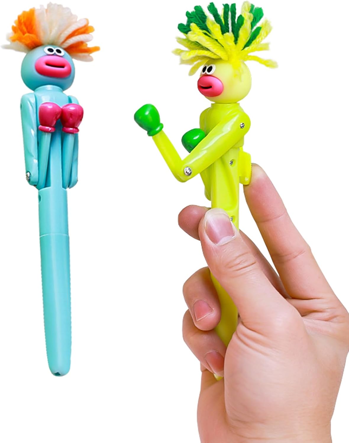 2pcs Fun Character Confrontation Boxing Pe, Funny Pen for All Ages, Fu Prank Pe, Children’s Ballpoint Pen, Office Supplies, School Supplies, Sand Sculpture Fun Pen for Stress ReliefGood fun stocking or party bag filler. I got for my 7 year old son and I know they are silly enough that he will love these and make him laugh. Nice bright colours and reasonable quality.Would recommend