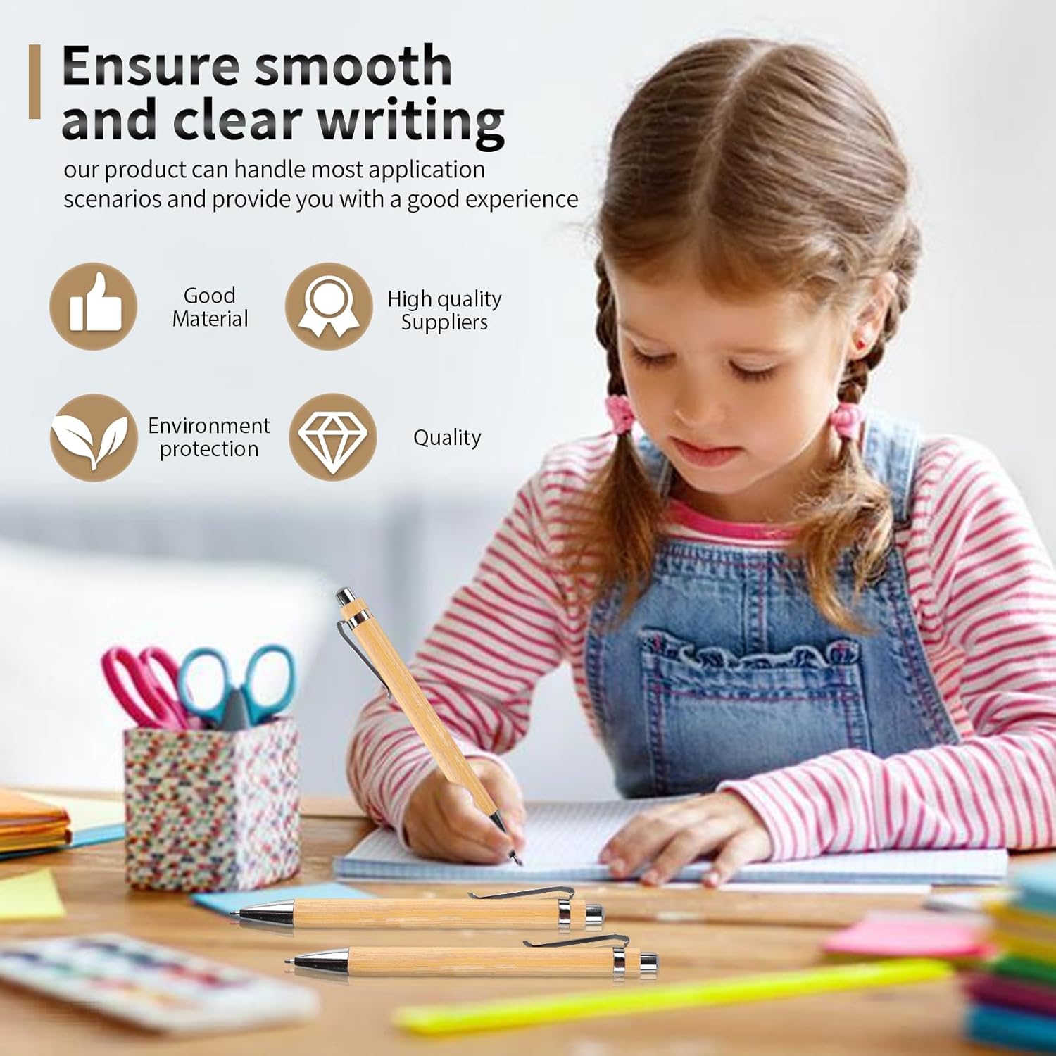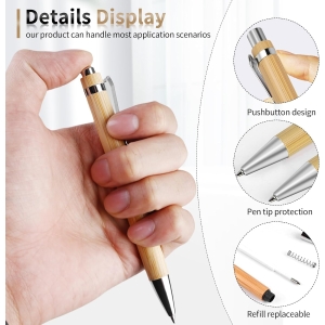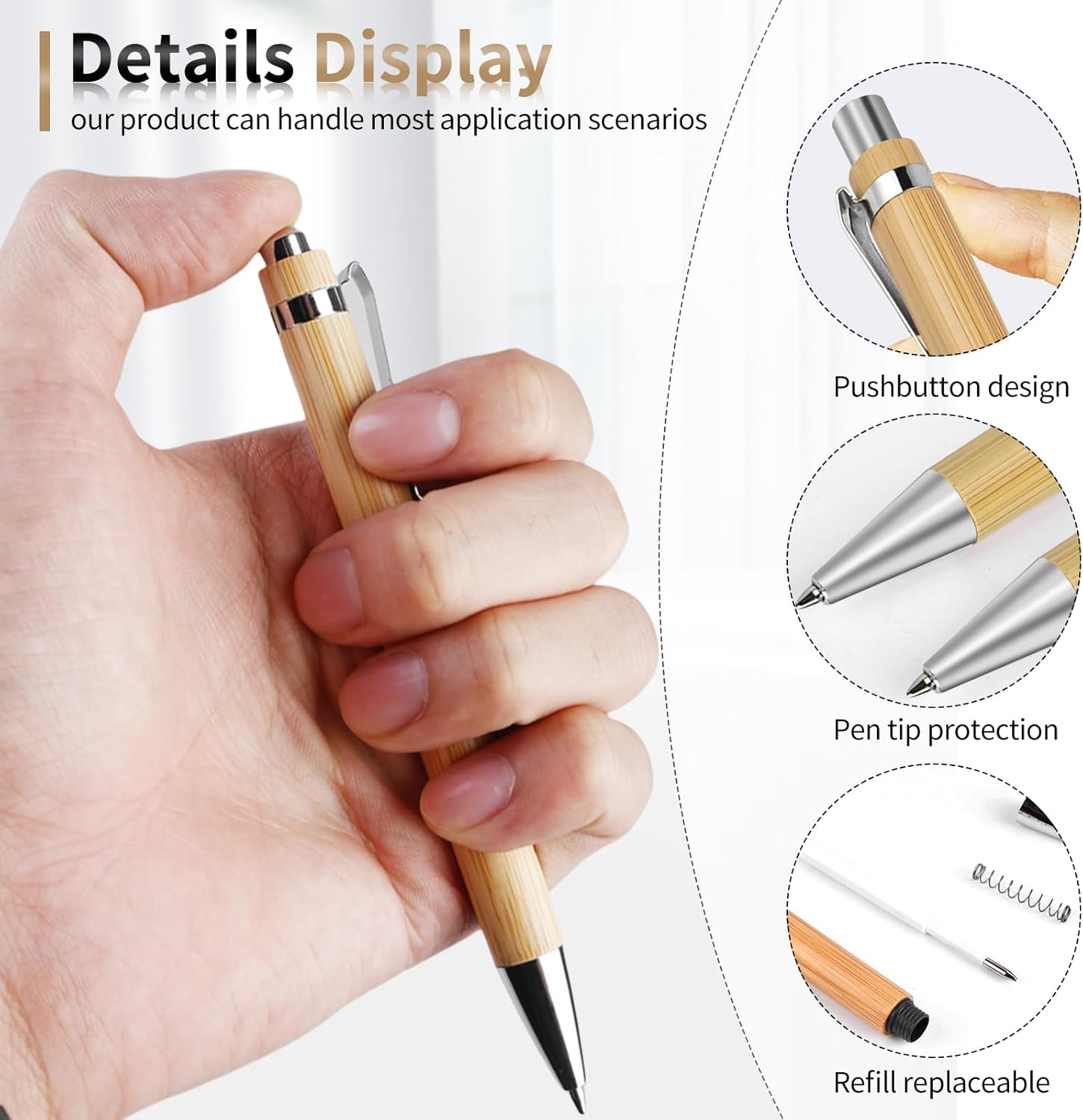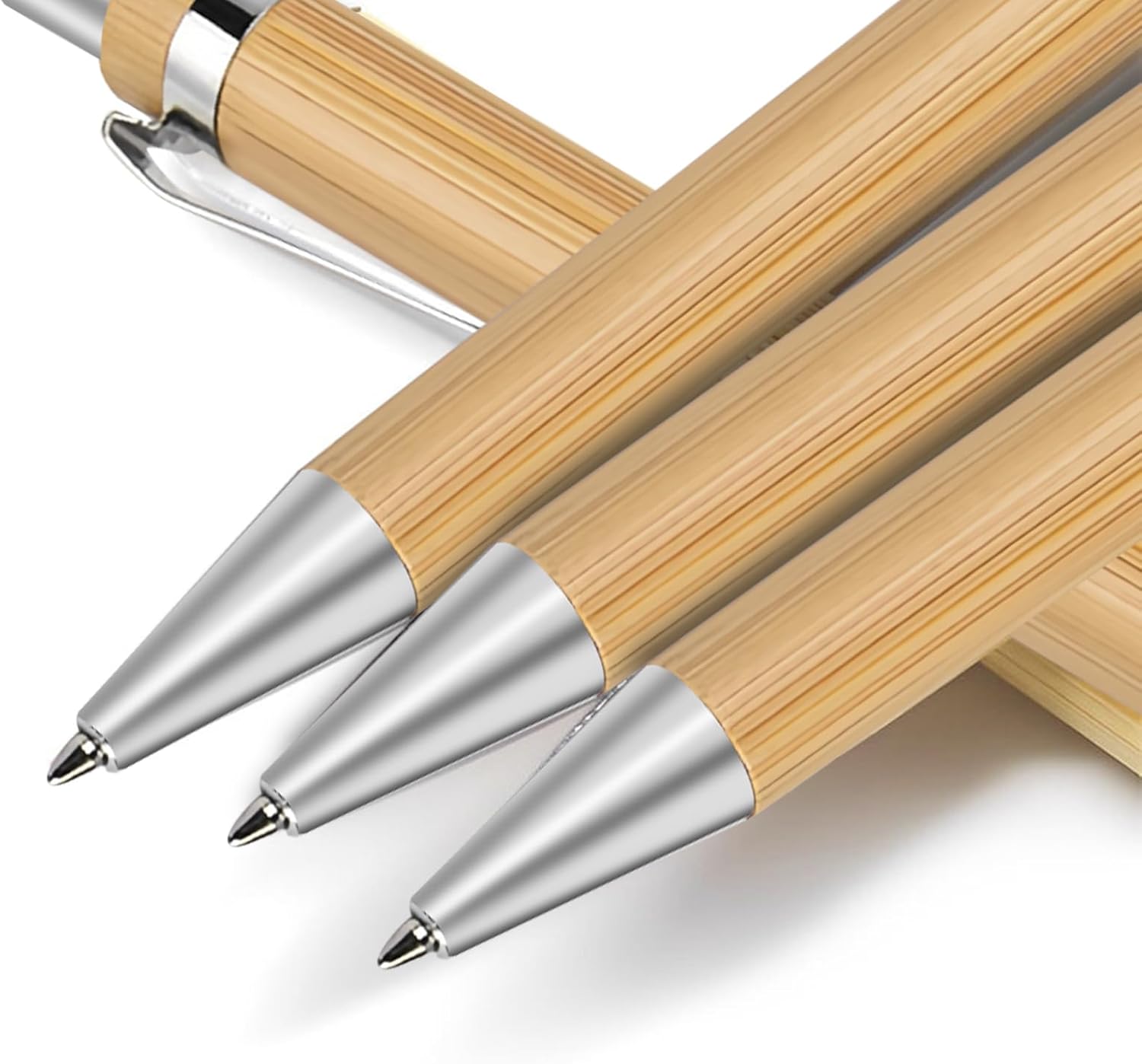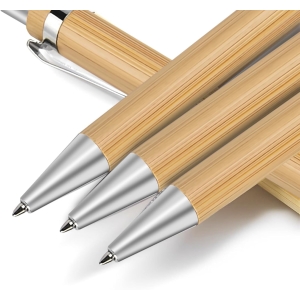 L’aspect naturel du bambou donne à ces stylos un look élégant et moderne. La texture du bois, alliée à un poids léger, procure une sensation de qualité dans la main. De plus, chaque stylo dispose d’un clip en métal pratique, qui vous permet de l’accrocher facilement à votre cahier, votre sac ou votre mallette. Ce détail pratique assure que vous ayez toujours votre stylo à portée de main lorsque l’inspiration frappe.