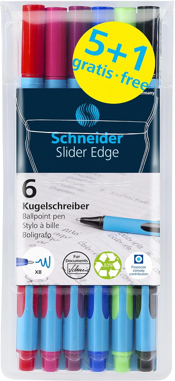 Par rapport à d’autres stylos à bille de la même catégorie, le Slider Edge XB se distingue par sa technologie Viscoglide®, qui assure une écriture extraordinairement douce et fluide. De plus, son corps composé à 83 % de plastique recyclé et sa pointe en acier inoxydable résistante à l’usure en font un choix durable et fiable pour les utilisateurs exigeants.