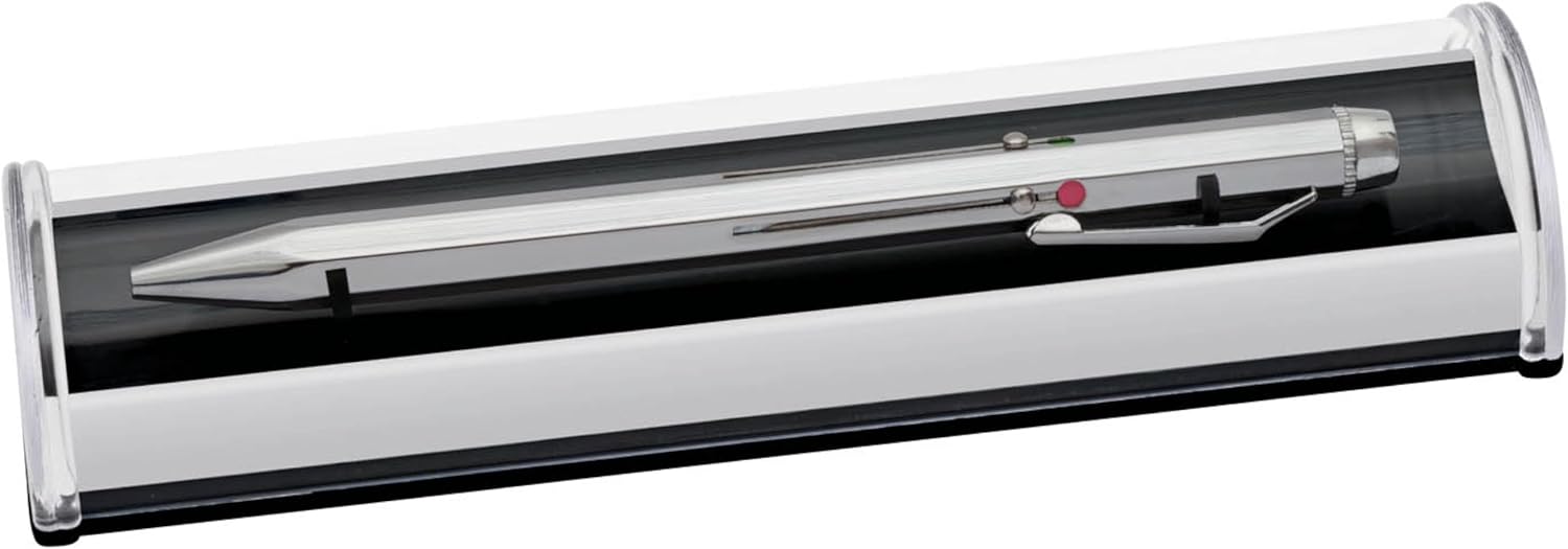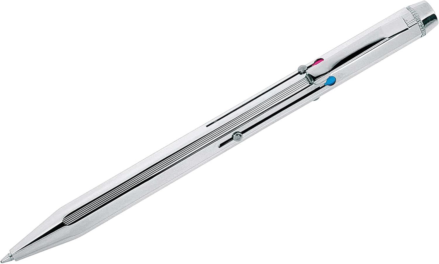 Le Stylo à bille quatre couleurs Wedo est l’instrument d’écriture par excellence pour ceux qui recherchent à la fois fonctionnalité et élégance. Avec son design classique en métal chromé, ce stylo est à la fois esthétique et pratique, apportant une touche de sophistication à vos note-taking et correspondances. Cette pièce polyvalente offre quatre couleurs d’encre différentes — noir, rouge, bleu et vert — toutes facilement interchangeables grâce à son mécanisme coulissant. Vous ne vous retrouverez plus jamais à la recherche d’un stylo de couleur précise, car tout ce dont vous avez besoin est à portée de main.