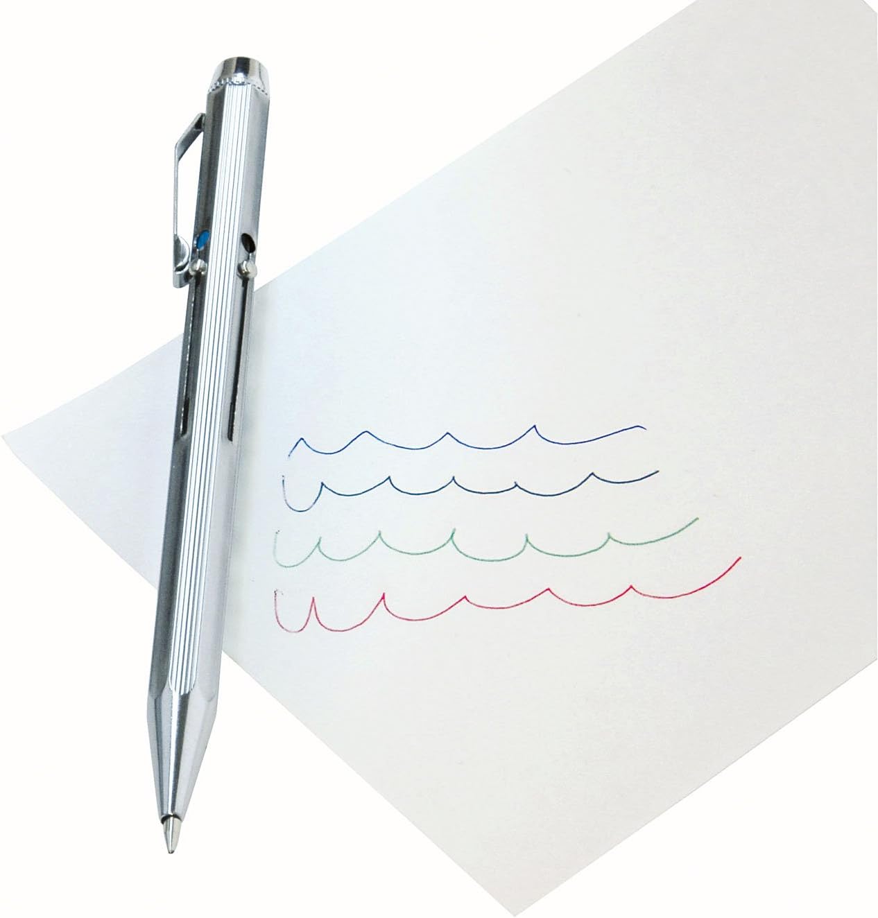 Le stylo quatre couleurs se révèle être un produit de qualité, fonctionnant de manière optimale. Son mécanisme est robuste et sa prise en main est aisée. Les boutons permettant le changement de couleur sont judicieusement placés. Je recommande vivement ce modèle quatre en un.