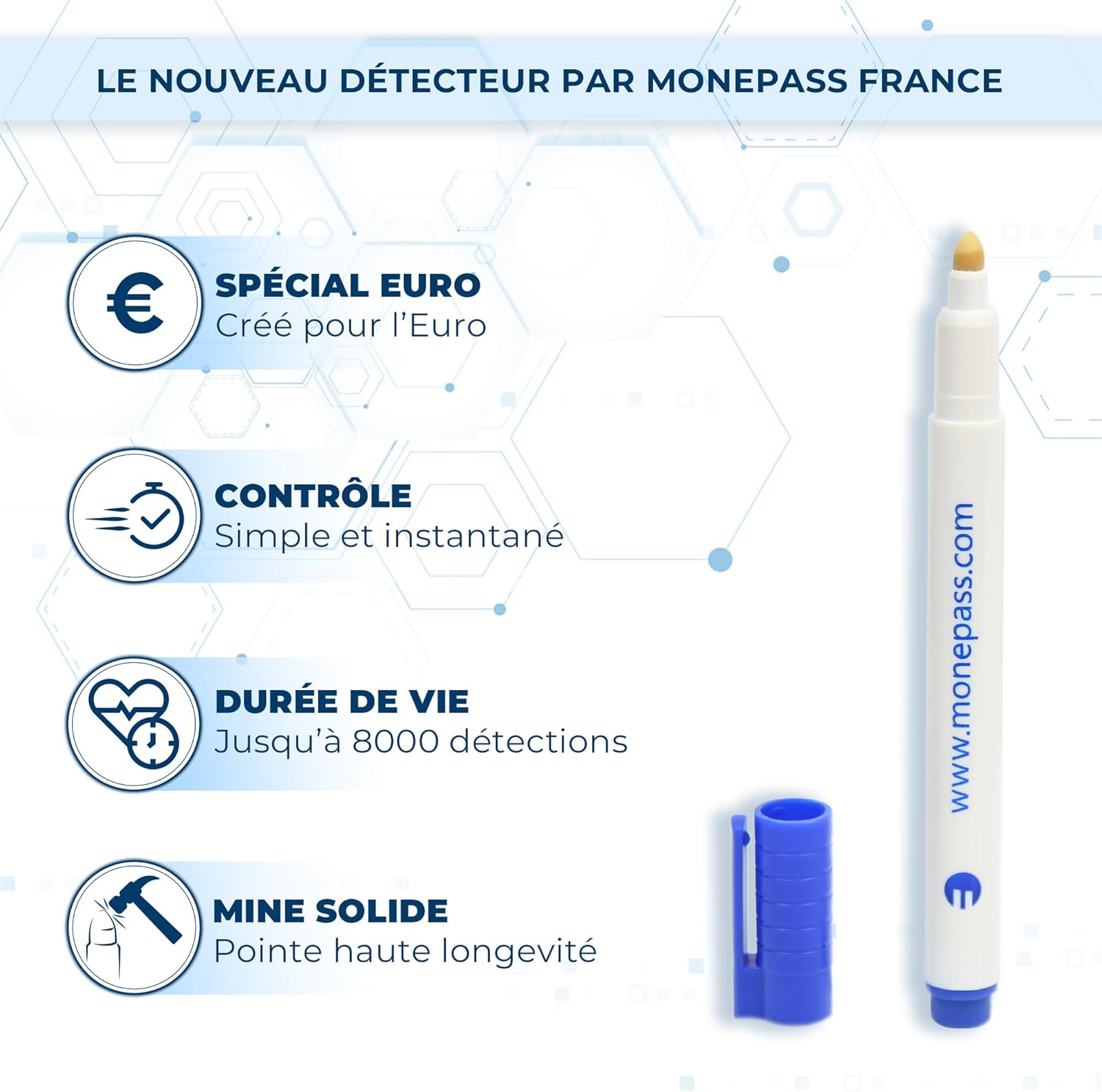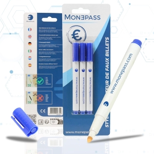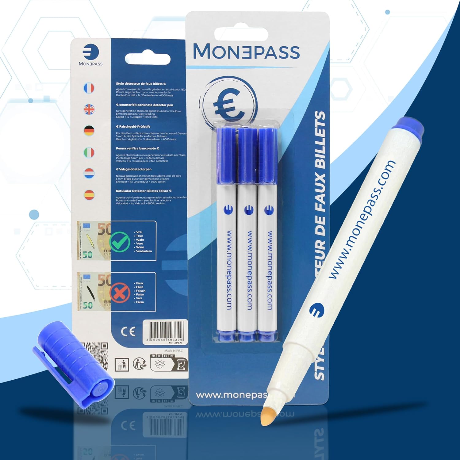 Le Lot de 3 stylos détecteurs de faux billets spécial Euro est un indispensable pour quiconque manipule de l’argent. Spécialisé dans la détection des faux billets en euros, ce nouveau modèle de Monepass s’inscrit dans une démarche d’efficacité et de rapidité. Chaque stylo est conçu avec une formule chimique de pointe pour garantir une détection précise des faux billets, rendant votre quotidien financier plus sûr.