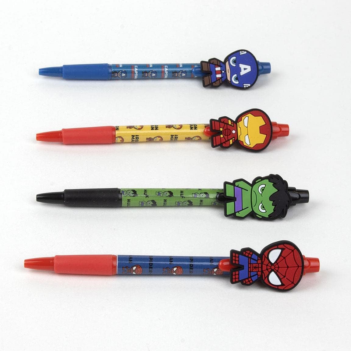 Chaque stylo de cet ensemble présente un design distinctif inspiré des personnages légendaires de Marvel. Les éléments en caoutchouc intégrés à la base de chaque stylo reflètent les caractéristiques uniques de chaque héros :