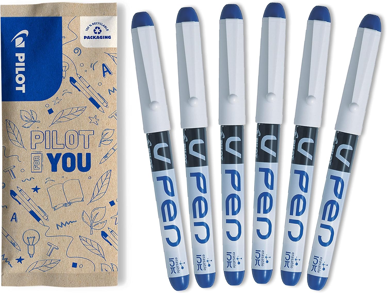 Una gran marca a un precio imbatible . Plumín fluido y agradable, azul intenso y bonito, borrable. Lastima que sean deshechables por el abuso de plasticos, pero son geniales .