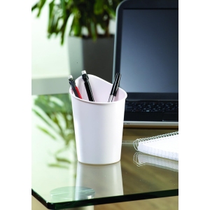 Acheté en blanc pour mettre quelques crayons sur mon bureau, ce pot à crayons est très basique.Il remplit à 100 % sa fonction.Petit réserve : il faut mettre suffisamment de stylos sinon il se renverse assez facilement.A ce prix, il est difficile d’attendre plus de ce produit.