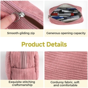 « J’ai acheté cette trousse pour ma fille et elle l’adore ! Le velours côtelé est doux et elle est vraiment spacieuse. »
