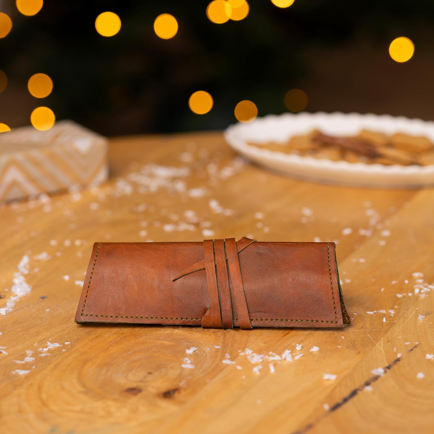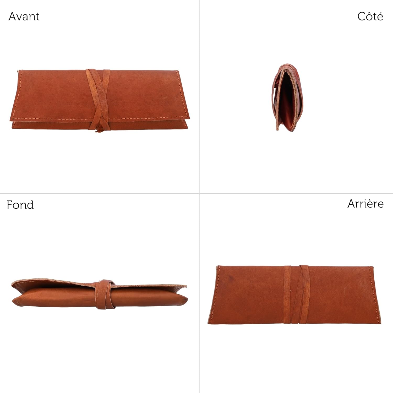 R1 : La trousse « Felix » est fabriquée en cuir de chèvre tanné végétal, connu pour sa souplesse et sa durabilité.