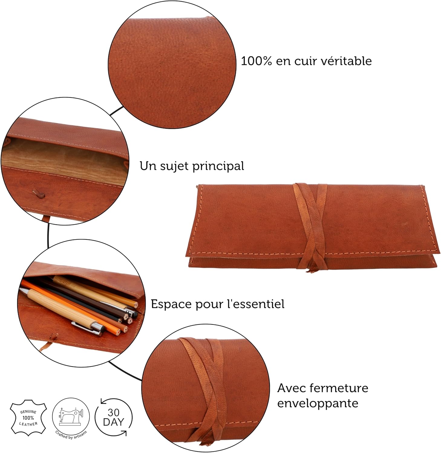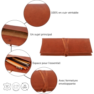 J’adore cette trousse, elle est aussi belle que pratique. Le cuir est de très bonne qualité et elle s’intègre parfaitement à mon style. Je peux y mettre tous mes stylos sans qu’elle prenne trop de place. – Sophie M. - Un excellent achat