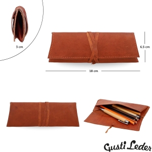 Pour garantir une expérience utilisateur agréable, Gusti utilise du cuir de chèvre de haute qualité, choisi pour sa souplesse et sa robustesse. Le cuir est non seulement agréable au toucher, mais il assure également que la trousse « Felix » résistera à l’épreuve du temps. Le tannage naturel garantit une finition authentique qui ne demande qu’à être patinée au fil des années pour révéler un charme unique. En optant pour cette trousse, les utilisateurs investissent dans un accessoire qui vieillira gracieusement.